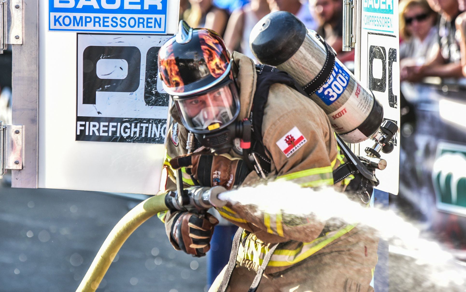 The FireFit Championships is an international competition based on intense, real-world firefighting tasks. Competitors wear full firefighter ‘bunker’ gear and breathing apparatus as they take on a physically demanding course. Events include a tower run while carrying a 20kg pack, a hose haul to the top of the tower, a rapid descent to the forcible entry machine, a slalom sprint, hose drag, and finally, a 40m rescue drag of a ‘Randy’ manikin to the finish line. Each of these tasks is challenging on its own, but doing them back-to-back makes this one of the toughest firefighter fitness challenges in the world.